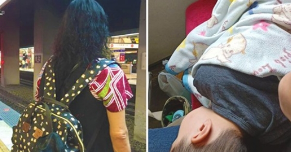 ▼這名媽媽在22日上午坐火車南下,
