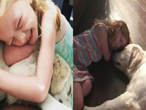 現在,狗狗已經長大了不少,和艾比也成了密不可分的朋友,父母說,自從狗狗來到家裡,艾比變得比以前更加自信了