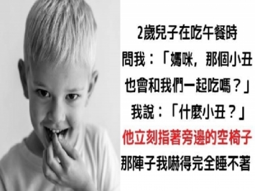 我2歲的兒子在午餐時曾問過我:「媽咪,這個小丑也會和我們一起吃飯嗎?」我說:「什麼小丑?」我兒子立刻指向桌旁的空椅子!那陣子我嚇得完全睡不著