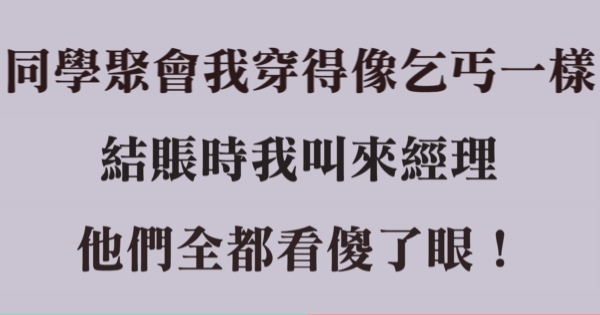 同學聚會我穿得像乞丐一樣,人人遠離,結帳時我叫來經理,他們全都看傻了眼!