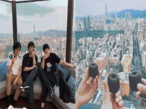 曬出在台北家中與亞洲天團五月天阿信和怪獸的合照,