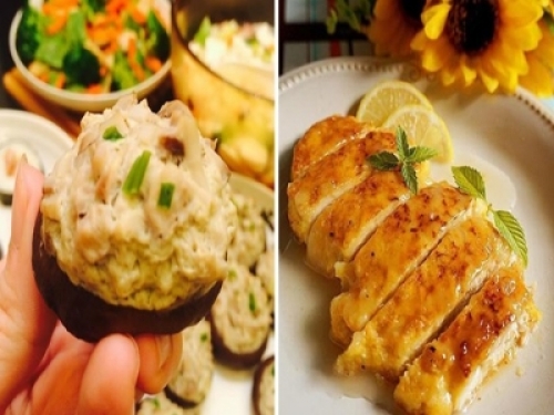 最後將醬汁淋在雞胸肉上即可