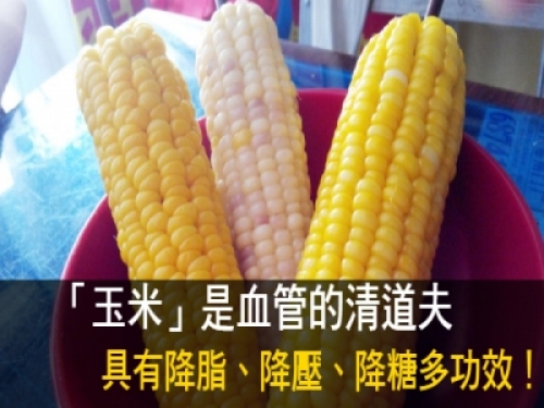 玉米含有大量的膳食纖維,可潤腸通便,吸附人體的鈉鹽隨糞便排出體外,有效降低血壓。玉米中的維生素E,可降低血清膽固醇、清除體內垃圾,保持血管彈性,輔助降血壓。