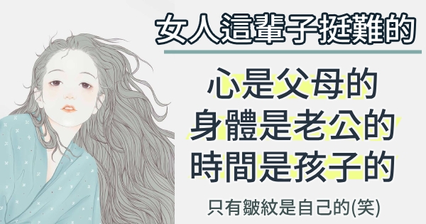 女人這輩子挺難的,心是父母的,身體是老公的,時間是孩子的