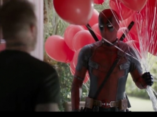 但死侍仍不死心!馬上又拿出一大堆氫氣氣球,把自己的聲音變得又高又尖的,只為了讓貝克漢可以原諒他XDD