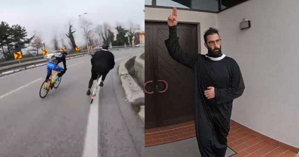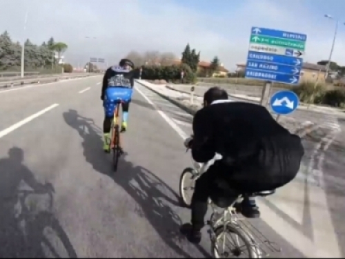 最近在網路上流傳了一支影片,讓網友們直呼「耶穌降臨」影片一開始可以看到一群自由車選手們正在聖馬利諾公路上進行訓練,每一個都騎著很快,但就在這個時候,突然來了一名牧師騎著他可愛的小折,然後開始跟我們些選手展開一連串的尬車技術!