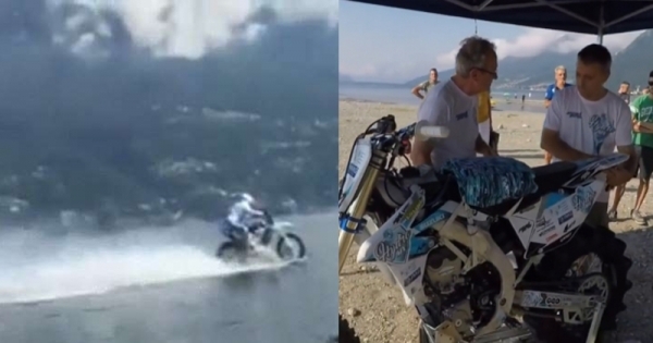 你有想過我們人類只要騎著機車就可以在水面上移動嗎?不是像日本忍者的輕功水上漂,而是真的騎摩托車然後奔馳在河面上!下面這位義大利的運動選手就成功了完成這項任務!他騎車的他機車橫跨了義大利的第三大湖泊,同時也創下了機車在淡水河航行的最遠的世界紀錄!