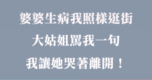 哈摟哈摟親愛的大家~~我是有錢人這麼想小編Pineapple!今天要來說說關「婆婆生病我照樣逛街,大姑姐罵我一句,我讓她哭著離開!」的事件!讓我們一起來看看吧!