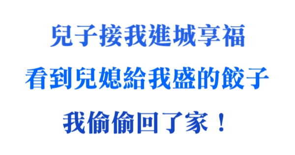 哈摟哈摟親愛的大家~~我是有錢人這麼想小編Pineapple!今天要來說說關「兒子接我進城享福,看到兒媳給我盛的餃子,我偷偷回了家!」的事件!讓我們一起來看看吧!