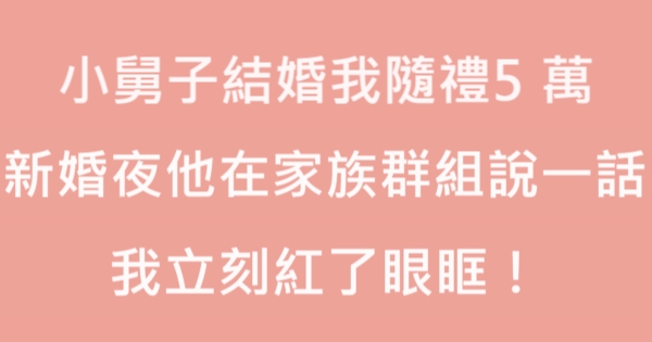 大家好,我是有錢人這麼想小編Pineapple!今天我們一起來看看「小舅子結婚我隨禮5萬,新婚夜他在家族群組說一話,我立刻紅了眼眶!」!背後到底藏著什麼秘密吧!
