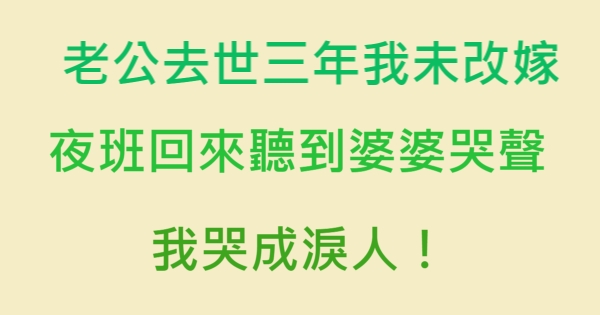 老公去世三年我未改嫁,夜班回來聽到婆婆哭聲,我哭成淚人!