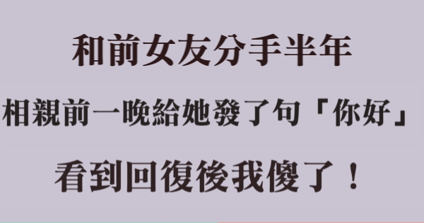 和前女友分手半年,相親前一晚給她發了句「你好」,看到回復後我傻了!