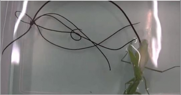 這隻螳螂突然被抓起來放進水中,就當大家還在納悶,不知道為何要對螳螂這麼做,下一刻不可思議的畫面居然就出現了!