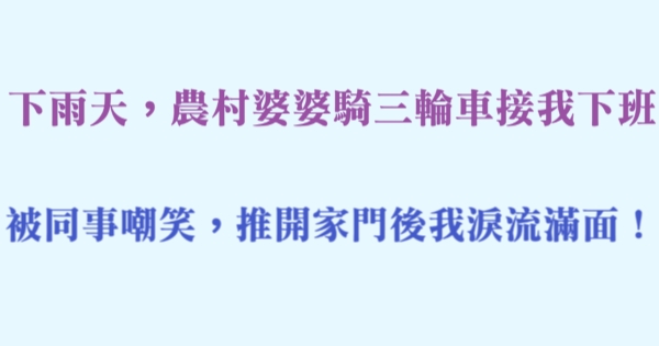 下雨天,農村婆婆騎三輪車接我下班,被同事嘲笑,推開家門後我淚流滿面!