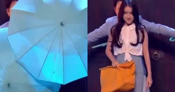 兩人走進身後的黑色箱子裡,出來後紛紛換上淺藍色的西裝與洋裝,出神入化的手法讓觀眾全看傻眼!
