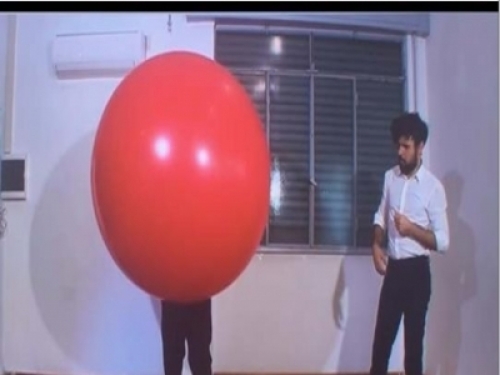 這贏男性一開始就把氣球套在上半身,看起來好像挺有這麼一回事的。