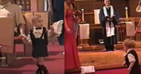 婚禮對於每個人來說都是非常重要的時刻,而且有許多繁文縟節,婚禮每個時刻都不能有絲毫差錯!而國外婚禮的習俗,會由花童走紅毯灑花瓣,之後再由戒童拿戒指送給新郎,可是這名小小花童的行為讓大人笑歪了!