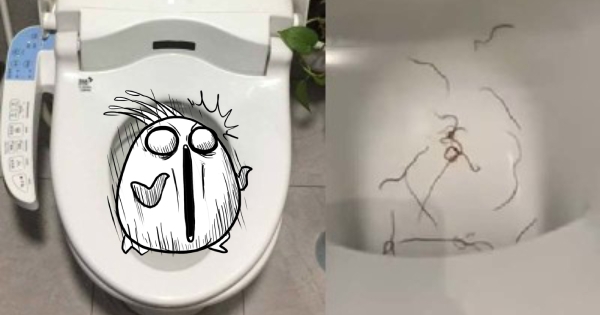 驚見馬桶裡面,突然出現一堆紅色扭曲的絲線,