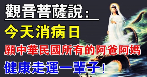 觀音菩薩說:今天消病日,祝願爸媽健康走運一輩子,今天一定要為父母祈福一次