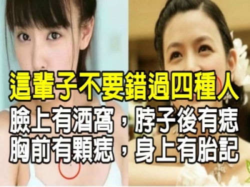 這4種人千萬別錯過! 臉上有酒窩、脖子後有痣、胸前有顆痣、身上有胎記...錯過了後悔一輩子!