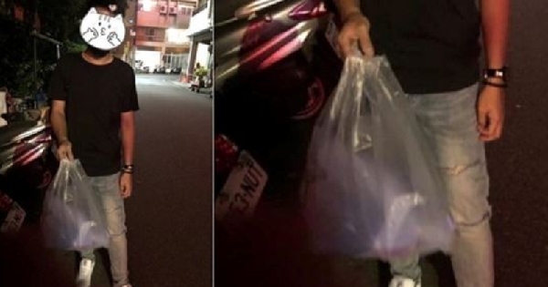 「他不好意思捧著所以拿塑膠袋,結果一看到我就這樣給我了」。