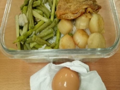 看完便當配菜後網友表示:「便當裡的菜色其實都不便宜!」,除了上述的干貝外,便當內還有蛋、蘆筍與豆皮,看似普通的蘆筍也不容小覷,根據《當季好蔬果》網站資料顯示,目前估計1公斤蘆筍就要300多塊台幣
