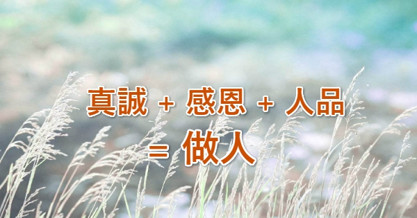 真誠 + 感恩 + 人品 = 做人!