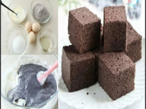 製作配料:黑米粉120克 牛奶75克 雞蛋3個 色拉油30克 細糖35克
