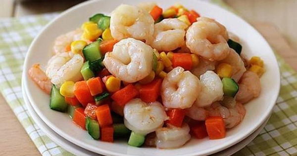 鮮蝦、甜玉米、黃瓜、胡蘿蔔、油、鹽、料酒、澱粉。