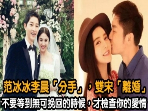 范冰冰李晨官宣分手,雙宋宣正式離婚,兩性專家:「不要等到無可挽回的時候,才檢查你的愛情 」