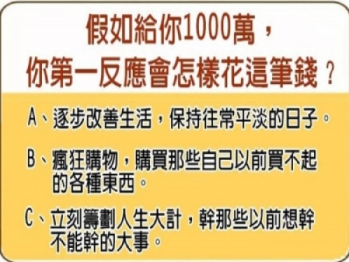 假如給你1000萬,你怎麼花錢,就是什麼命!(太凖了)