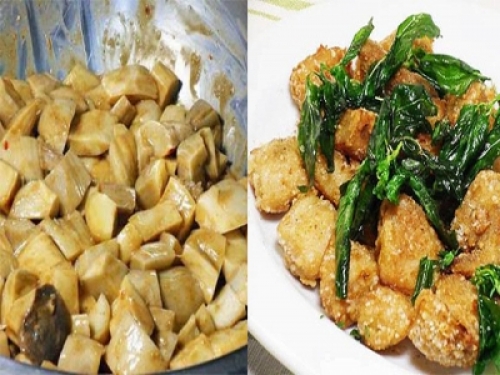 ﹝6﹞起油鍋把杏鮑菇放入炸到金黃就可以起鍋了〜