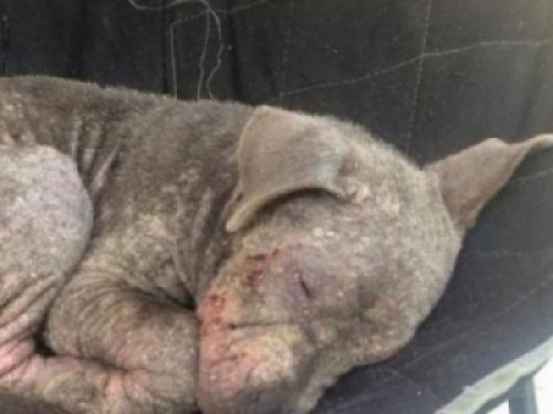 我真的不知道,一隻家養寵物狗到底是受到怎樣的虐待,成了現在這般模樣