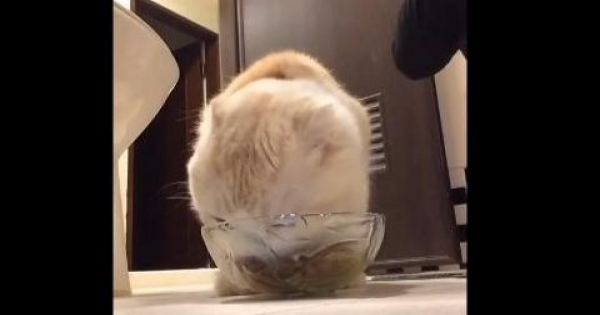 女主人蹲著陪貓咪吃飯,結果貓咪的反應萌死一大票網友!