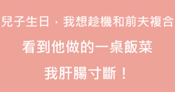 哈摟哈摟親愛的大家~~我是有錢人這麼想小編Pineapple!今天要來說說關「兒子生日,我想趁機和前夫複合,看到他做的一桌飯菜,我肝腸寸斷!」的事件!讓我們一起來看看吧!