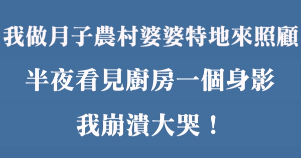 我做月子農村婆婆特地來照顧,半夜看見廚房一個身影,我崩潰大哭!
