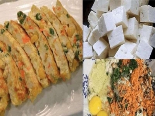 看看這樣的豆腐餅,味道真的是特別好的,而且還放了雞蛋,胡蘿蔔之類的。