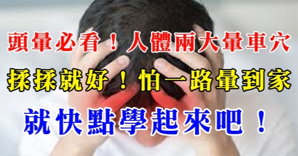 頭暈必看!人體兩大暈車穴,揉揉就好!怕一路暈到家,就快點學起來吧!