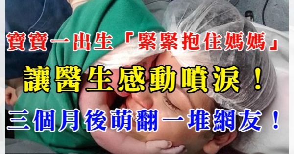 寶寶一出生「緊緊抱住媽媽」讓醫生感動噴淚!三個月後「大眼可愛模樣」萌翻一堆網友!