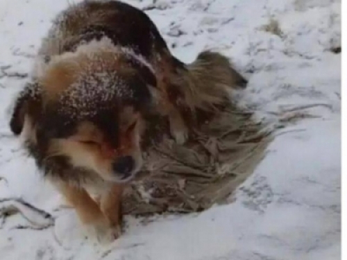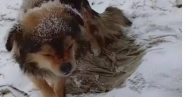 跟朋友在雪地裡玩耍,遠遠的看到一隻狗狗窩在雪地上,靠近一看瞬間淚崩...怎麼會有哪麼狠心的人!!