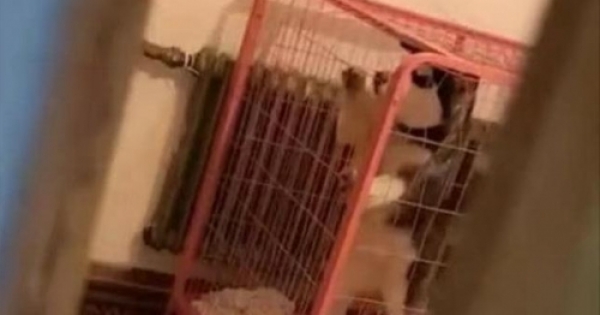 哈士奇主人製造了自己已經出去的假象,然後在門邊多了起來,看一看自家哈士奇到底是怎麼出來的。這一看他算是徹底明白了。原來哈士奇看他走後,就像做賊似的扶著籠子東看西看,確定自己的主人是離開了以後。就開始自己的越獄計劃,哈士奇雙腿雙腳並用,爬上了欄杆,然後不放心的左看看右看看,確定了以後就開始了下一步計劃。