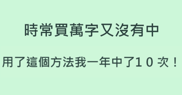 哈摟哈摟親愛的大家~~我是有錢人這麼想小編Ant!今天要來說說關「時常買萬字又沒有中,用了這個方法我一年中了10次!」的事件!讓我們一起來看看吧!