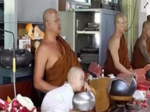 這是泰國國王都要參與的嚴重佛教盛事,在泰國關注度極高。而隨之又火了一把的,是「一睡成名」的「瞌睡小沙彌」龍坤(Nongkorn),當年成為小網紅的時候年僅2歲半。假如你還記得他在師父講經的課堂上,就在師父面前睡得東倒西歪的樣子,應該就知道他這一睡有多紅!