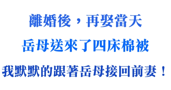 大家好,我是有錢人這麼想小編Pineapple!今天我們一起來看看「離婚後,再娶當天,岳母送來了四床棉被,我默默的跟著岳母接回前妻!」!背後到底藏著什麼秘密吧!