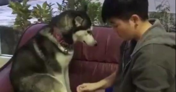 哈士奇被主人罵生悶氣,賭氣不吃飯,可憐的主人只好「這樣做」網友看了全搖頭:標準的狗奴一個!