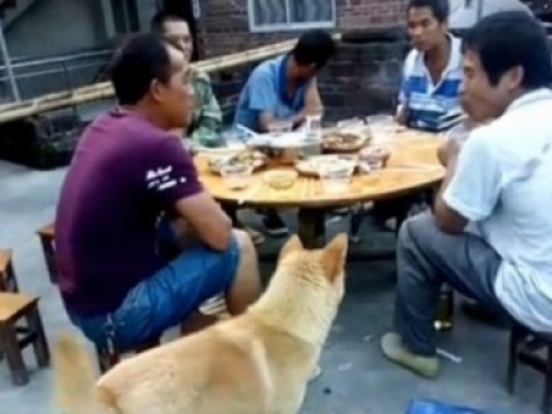 招數三:前面兩招都沒有用後,田園犬開始使出了大絕招,那就是不停給旁邊的人拜拜,賣萌求求旁邊的人給點吃的。
