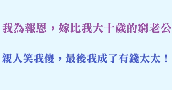 哈摟哈摟各位讀者~~我是有錢人這麼想小編Pineapple!今天要來說說關於「我為了報恩,嫁給比我大十歲的窮老公,親人笑我太傻,結果最後我成了有錢太太!」,不知道大家有沒有興趣呢!一起來看看是怎麼樣的事吧!