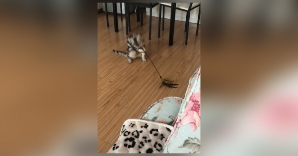 主人沒空逗貓,想不到貓咪竟然自己拿著逗貓棒然後.....網友看了笑到噴淚:這貓隻的HEN聰明耶!!