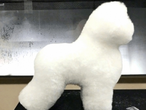 各個角度全方面欣賞一下,雪白雪白的毛髮,被美容師給修的如此圓潤,這小哥可能是學園林修煉成的手藝吧。