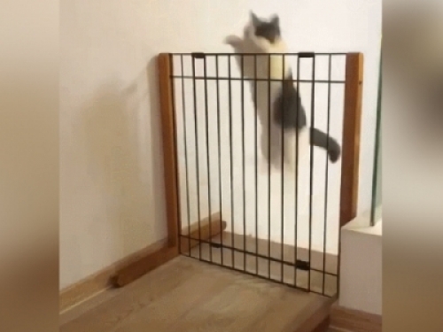 就像是有的鏟屎官在家會設防護欄,以來是為了寵物的安全,二來也許是某一個區域不能讓寵物進入,但是我們的鏟屎官應該是低估了喵皇的實力了吧。